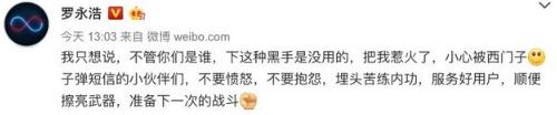 羅永浩也于今日下午表示:“我只想說(shuō),不管你們是誰(shuí),下這種黑手是沒(méi)用的,把我惹火了,小心被西門(mén)子。子彈短信的小伙伴們,不要憤怒,不要抱怨,埋頭苦練內功,服務(wù)好用戶(hù),順便擦亮武器,準備下一次的戰斗。”