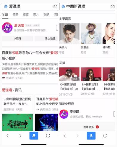 以愛(ài)說(shuō)唱智能小程序為例,在百度搜索里直接搜「愛(ài)說(shuō)唱」,會(huì )在結果頁(yè)最上方呈現智能小程序;如果搜索一檔說(shuō)唱相關(guān)綜藝節目「中國新說(shuō)唱」,結果欄也會(huì )出現「愛(ài)說(shuō)唱」智能小程序。再以攜程小程序為例,只要用戶(hù)近期存在針對旅游資訊的搜索行為,并且關(guān)注了推送旅游攻略與優(yōu)惠信息的百家號,攜程智能小程序就會(huì )自動(dòng)被推送出現在手機百度 feed 流推薦之中,從而達到喚醒用戶(hù)的目的。不論是哪種方式,從中都可以窺見(jiàn)百度試圖盤(pán)活存量搜索數據、打通內容——信息——服務(wù)最優(yōu)鏈路的愿景與初心。