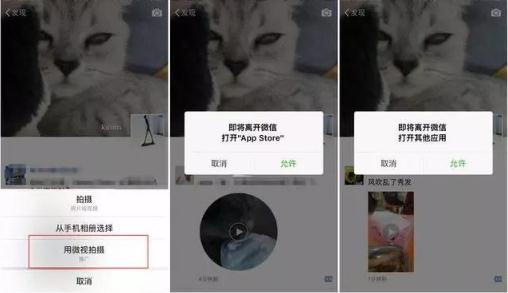 如果用戶(hù)沒(méi)有微視應用,點(diǎn)擊會(huì )彈出跳轉頁(yè)面去應用商店進(jìn)行下載,這是一個(gè)很典型的互聯(lián)網(wǎng)應用拉新方式;如果裝有該應用的,則跳轉進(jìn)入微視。