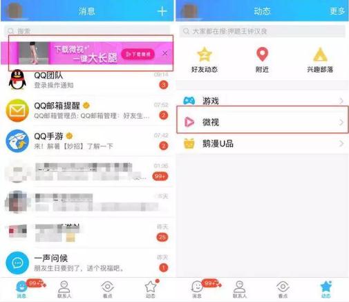 微視則主要在 QQ 上推廣。之后在手機 QQ 的頁(yè)面上都能看到無(wú)處不在存在微視的廣告。