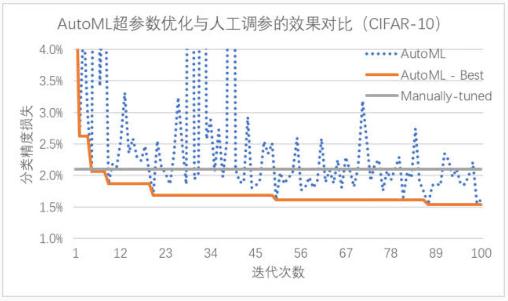相比于費時(shí)費力的人工調參,PocketFlow 框架中的 AutoML 自動(dòng)超參數優(yōu)化組件僅需 10 余次迭代就能達到與人工調參類(lèi)似的性能,在經(jīng)過(guò) 100 次迭代后搜索得到的超參數組合可以降低約 0.6% 的精度損失;通過(guò)使用超參數優(yōu)化組件自動(dòng)地確定網(wǎng)絡(luò )中各層權重的量化比特數,PocketFlow 在對用于 ImageNet 圖像分類(lèi)任務(wù)的 MobileNet-v1 模型進(jìn)行壓縮時(shí),取得了一致性的性能提升;用 PocketFlow 平均量化比特數為 8 時(shí),準確率不降反升,從量化前的 70.89% 提升到量化后的 71.29%。