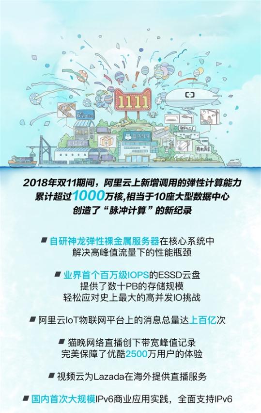 2018 年雙 11 期間,阿里云上新增調用的彈性計算能力累計超過(guò) 1000 萬(wàn)核,相當于 10 座大型數據中心,創(chuàng )造了“脈沖計算”的新紀錄。