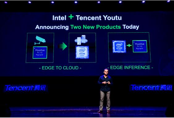 騰訊優(yōu)圖 AI 攝影機是基于英特爾 Movidius Myriad 2 VPU 的智能攝像頭,在前端完成人臉檢測,特征提取等 AI 任務(wù),由云端英特爾至強處理器來(lái)完成熱點(diǎn),動(dòng)線(xiàn)等數據分析,可以廣泛用于智慧零售,安防,智能樓宇等場(chǎng)景;優(yōu)圖盒子是基于英特爾 ApolloLake 和 Movidius Myriad X 平臺的邊緣計算 AI 盒子,能在邊緣獨立完成 AI inference,據了解,Myriad X 在同樣功耗條件下能提供 Myriad 2 十倍的深度神經(jīng)網(wǎng)絡(luò )(DNN)性能。