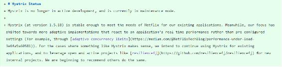 Hystrix 將處于維護模式,Netflix 不再主動(dòng)審核 issue、合并 PR,以及發(fā)布新版本 Hystrix。有興趣接手該項目的社區成員可以聯(lián)系 hystrixoss@googlegroups.com。