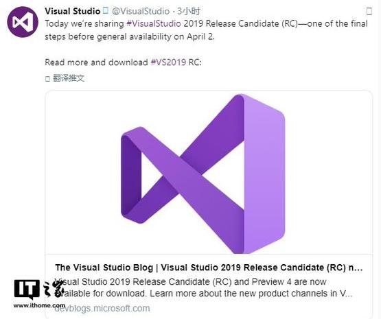 微軟將在 4 月 2 日將正式推出 Visual Studio 2019 的通用版本(GA 版),而 RC 版基本接近完成,微軟方面不會(huì )再增加新功能,主要著(zhù)重于 Bug 掃除。RC 版與 GA 版一樣,均能得到微軟的后續支持。