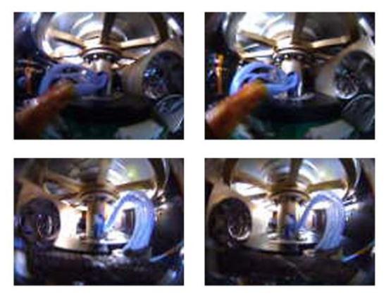 這些低分辨率圖像顯示了展開(kāi)太陽(yáng)能電池板之前的“光帆 2 號”內部情況。這些圖像被放大了三倍。上面的兩張和下面的兩張圖片是來(lái)自同一臺相機的相同視圖,只是光照條件略有不同。
