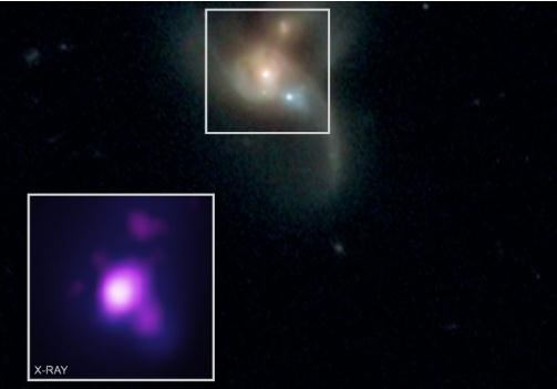 通常情況下,黑洞被認為存在于星系中心,超大質(zhì)量黑洞被認為是當中尺寸最大、能量最強的一種。據信,在我們星系中心就有這種超大質(zhì)量黑洞,然而稱(chēng)為 SDSS J084905.51+111447.2 的星系中擁有三個(gè)這樣的黑洞,這使得它成為一個(gè)不可思議的怪異現象。