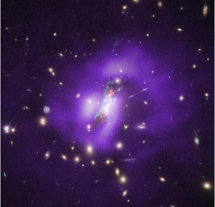 美國麻省理工學(xué)院研究人員使用錢(qián)德拉X射線(xiàn)天文臺和哈勃太空望遠鏡進(jìn)行觀(guān)測,目標鎖定一個(gè)叫做“鳳凰星團”的遙遠星系群,該星系群中包含著(zhù)一個(gè)超大質(zhì)量黑洞,具備誕生恒星的理想條件。