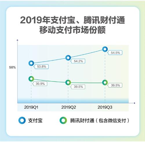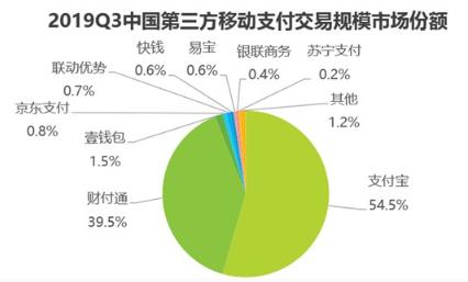 近期,獨立第三方機構艾瑞發(fā)布最新移動(dòng)支付交易規模報告。根據報告,2019 年 Q3 支付寶移動(dòng)支付以 54.5% 的市場(chǎng)份額居首,財付通份額為 39.5% 排第二。