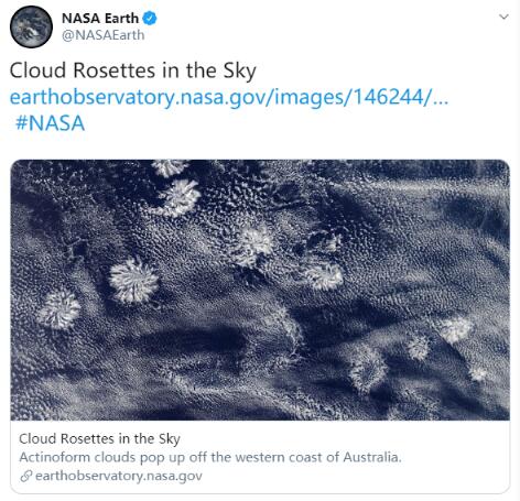 NASA發(fā)現只有從太空才能觀(guān)測到的神秘“玫瑰云”