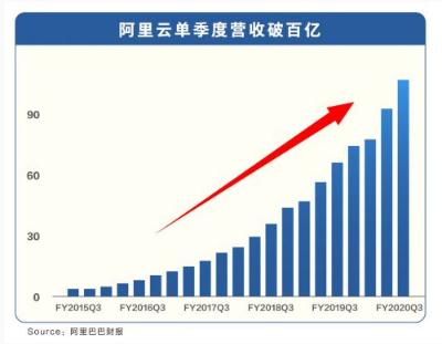 北京時(shí)間 2 月 13 日晚間,阿里巴巴集團發(fā)布 2020 財年第三季度財報,阿里云季度營(yíng)收 107 億元,同比增長(cháng) 62%。該數字在過(guò)去 5 年增長(cháng)近 30 倍,阿里云迅速成長(cháng)為全球第三家、也是中國唯一單季度百億級云服務(wù)商。
