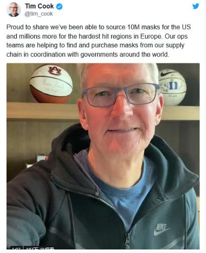 庫克當時(shí)發(fā)布推文稱(chēng):“我們在蘋(píng)果的團隊一直在努力為抗擊新型冠狀病毒疫情的醫療保健提供者尋找補給。我們正在為美國和歐洲的醫療專(zhuān)業(yè)人員捐贈數百萬(wàn)個(gè)口罩。我們感謝前線(xiàn)的每一位英雄。”