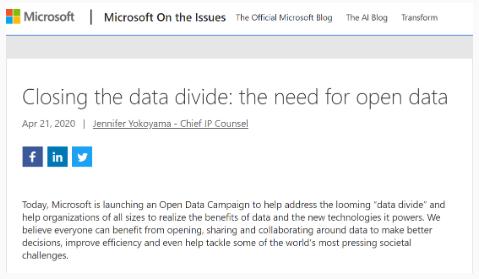 微軟首席知識產(chǎn)權顧問(wèn) Jennifer Yokoyama 在帖子中寫(xiě)道:“縮小數據鴻溝是一個(gè)巨大的挑戰。但是,如果我們能夠共同努力在開(kāi)放數據上取得進(jìn)展,那么對于各種規模的組織以及整個(gè)社區而言,其收益都是巨大的。我們致力于做出自己的貢獻,我們期待與他人合作并向他人學(xué)習,以便每個(gè)人都能意識到數據的好處。”
