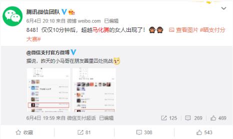 不過(guò)很快,騰訊微信團隊曬出了大神級別人物的存在:“848!僅僅 10 分鐘后,超越馬化騰的女人出現了!”
