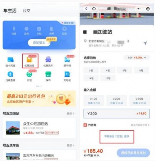 在出行服務(wù)中,車(chē)主在“車(chē)生活”中找到“優(yōu)惠加油”,便可以使用加油服務(wù)。在進(jìn)入加油站后,選擇選擇加油品類(lèi)、對應的油槍槍號,輸入需要加油的金額,完成支付即可。