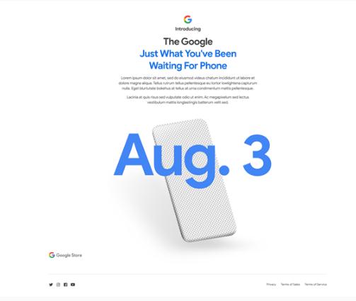 7 月 31 日消息,谷歌在其商城更新了一個(gè)全新頁(yè)面,該頁(yè)面顯示了一個(gè)手機圖片,并有 Agu.3 字樣。意味著(zhù)這款手機將于 8 月 3 日發(fā)布。
