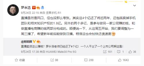 有網(wǎng)友感嘆:“直播賣(mài)貨這么賺錢(qián)?羅永浩老師已經(jīng)還了 4 個(gè)億!一個(gè)人干出了一個(gè)上市公司啊這是!”