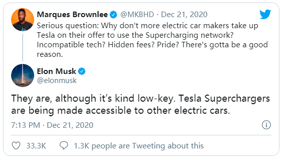 特斯拉在全球已經(jīng)部署了超過(guò) 2 萬(wàn)個(gè)超級充電樁,而且還在迅速擴張。特斯拉 CEO 埃隆·馬斯克曾經(jīng)表示,特斯拉超級充電站網(wǎng)絡(luò )可以向其他電動(dòng)汽車(chē)制造商開(kāi)放,但要使用該系統,其他公司需要進(jìn)行投資幫助特斯拉擴大規模。