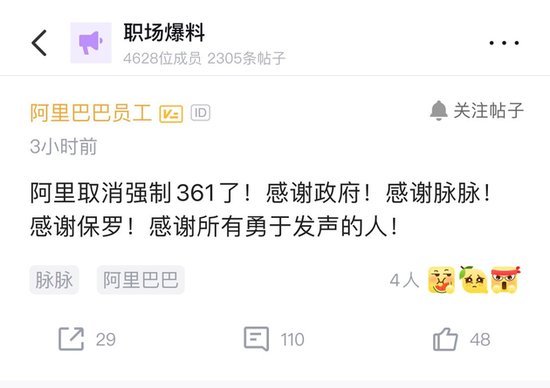 12 月 28 日消息,今日早間,阿里巴巴集團 CPO 童文紅在內部論壇宣布,將取消強制“361”考核制度,不再強制直屬領(lǐng)導給 10% 員工 3 分-3.25 分的績(jì)效評級。阿里巴巴集團員工向鳳凰網(wǎng)科技證實(shí)了該消息。