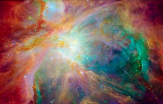 上圖中的獵戶(hù)座星云,包含了一些新生、但非常大的恒星,輔以大量氣體組成的漩渦。兩臺望遠鏡在不同波長(cháng)下進(jìn)行了拍攝,使得我們可以窺見(jiàn)從未見(jiàn)過(guò)的場(chǎng)景。