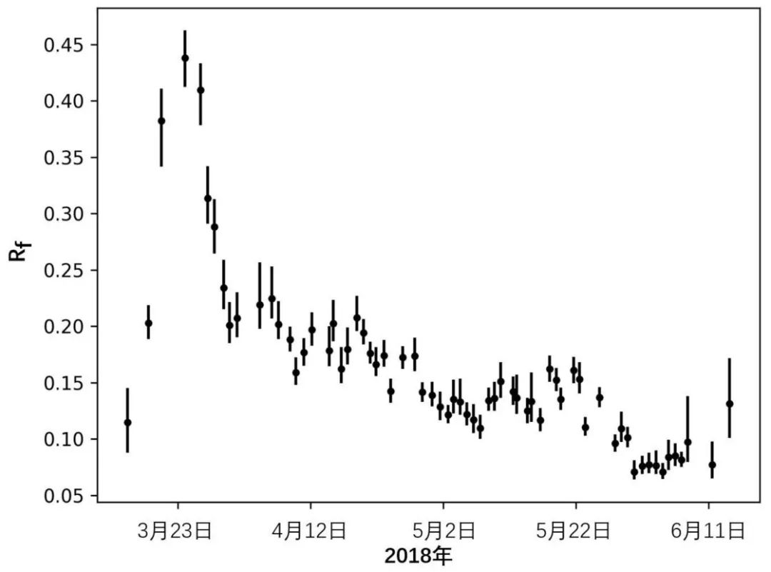 該團隊對同時(shí)期MAXIJ1820+070的X射線(xiàn)時(shí)變分析顯示,當X射線(xiàn)輻射流強逐漸下降時(shí),冕的幾何尺度趨向黑洞收縮(即尺度在減小);而越靠近黑洞,引力彎曲效應越強,吸積盤(pán)相對于冕的張角越大,冕輻射出的X射線(xiàn)光子本應有更大比例照射到吸積盤(pán)上,增強冕對吸積盤(pán)的照射。
