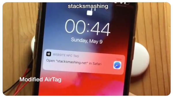 可是,就在A(yíng)irTag正式發(fā)售的第 10 天(AirTag 于 4 月 30 日正式發(fā)售),即 5 月 9 號蘋(píng)果就被“打臉”了:一位德國安全研究人員 Stack Smashing 發(fā)推表示他能“入侵 AirTag 的微控制器”,還能修改其丟失模式下的NFC URL,而這個(gè) URL 可被黑客用于網(wǎng)絡(luò )釣魚(yú)或其他任何入侵操作!
