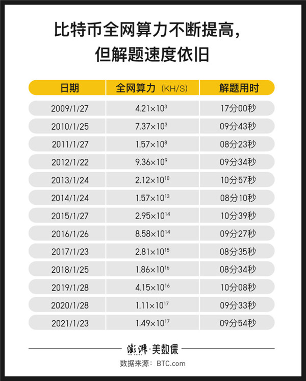 但解題時(shí)間并沒(méi)有隨著(zhù)整體算力的增加而減少,因為題目的難度是隨著(zhù)算力而變動(dòng)。全網(wǎng)算力的迅速提升,挖礦難度也開(kāi)始大幅上升。