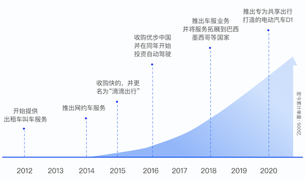 隨后在2014年,滴滴推出網(wǎng)約車(chē)服務(wù),包括快車(chē)、專(zhuān)車(chē)、順風(fēng)車(chē)等;2015年與當時(shí)的競爭對手快的合并,并更名“滴滴出行”;2016年,與另外一家競爭對手Uber中國合并,同時(shí)開(kāi)始投資自動(dòng)駕駛業(yè)務(wù);2018年,滴滴推出了車(chē)服業(yè)務(wù),并開(kāi)始國際化業(yè)務(wù),從巴西拓展至墨西哥,然后陸續到其他國家;2020年,滴滴推出了專(zhuān)為共享出行打造定制網(wǎng)約車(chē)D1。