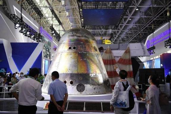 2021年9月28日,廣東珠海,第十三屆中國航展上的新一代載人飛船試驗船返回艙。中新社記者 陳楚紅 攝
