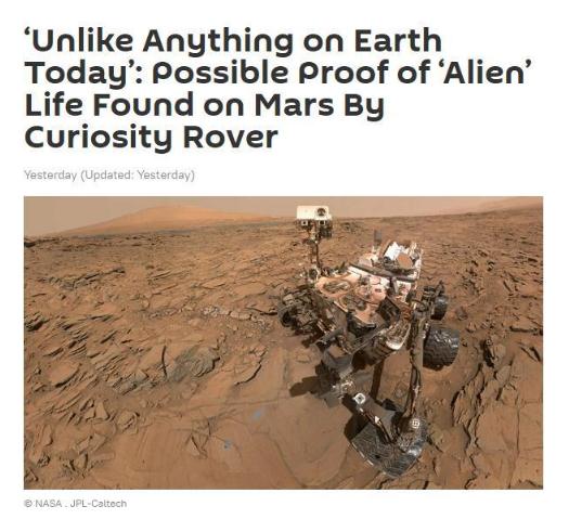 第三種解釋(生物假設)是,火星表面的微生物產(chǎn)生甲烷,甲烷在與空氣中的紫外線(xiàn)相互作用后轉化成更復雜的有機分子。這些較大的有機物隨后落回火星表面,并被“好奇號”取樣的巖石所吸收。