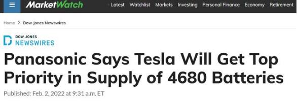 據 Market Watch 報道,電動(dòng)汽車(chē)制造商特斯拉的電池供應商松下電器表示,預計今年將開(kāi)始試生產(chǎn)一種更強大的新型鋰離子電池。
