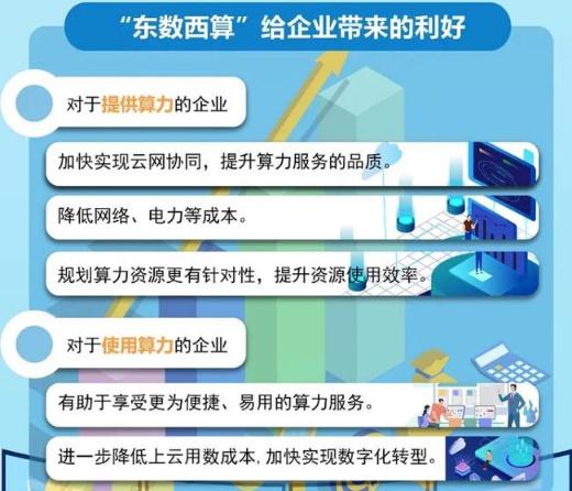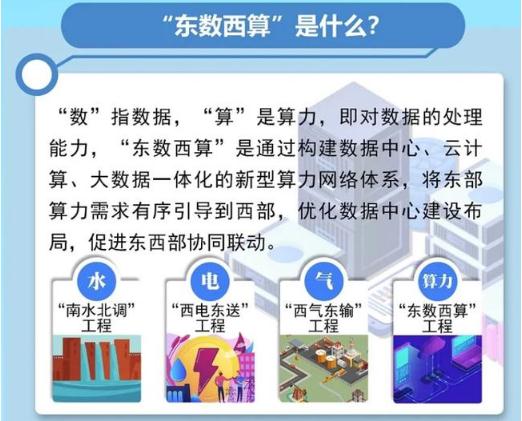 所謂“東數西算”,就是指通過(guò)構建數據中心、云計算、大數據一體化的新型算力網(wǎng)絡(luò )體系,將東部算力需求有序引導到西部,優(yōu)化數據中心建設布局,促進(jìn)東西部協(xié)同聯(lián)動(dòng)。簡(jiǎn)單地說(shuō),就是讓西部的算力資源更充分地支撐東部數據的運算,更好為數字化發(fā)展賦能。