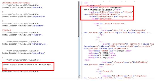 當時(shí)又不想放棄這個(gè)上傳點(diǎn),只能強行分析一下相關(guān)的 JS 和 HTML 代碼。嘗試修改參數讓上傳功能正常使用。 點(diǎn)擊上傳,定位 HTML 源碼