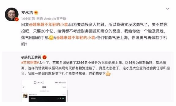 昨天,在回復網(wǎng)友有沒(méi)有勇氣再做款手機的提問(wèn)時(shí),羅永浩回復稱(chēng):因為要燒投資人的錢(qián),所以我確實(shí)沒(méi)這勇氣了。