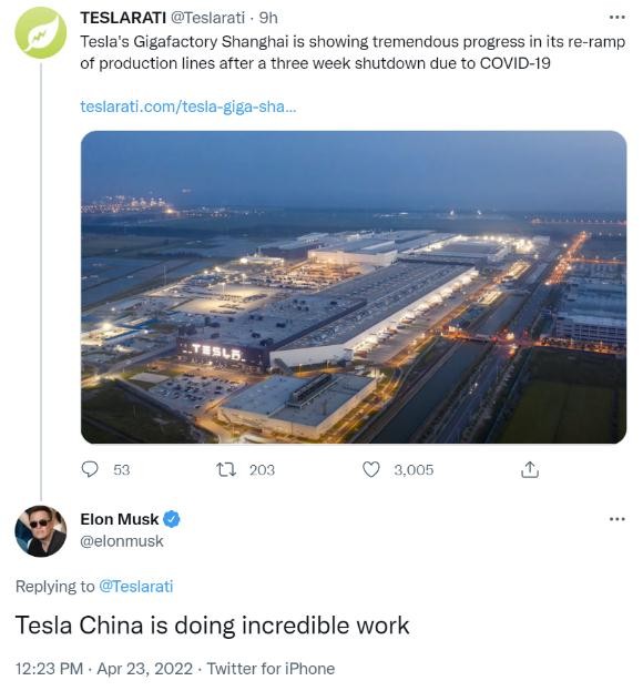 此前,外媒 Teslarati 指出,因新冠疫情而中斷 3 周的特斯拉上海超級工廠(chǎng)在重啟生產(chǎn)線(xiàn)方面取得巨大進(jìn)展。