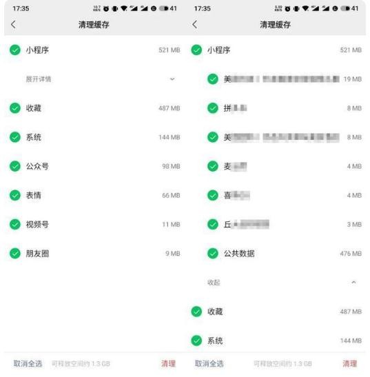 舉個(gè)栗子,小程序緩存。這回微信更新后,每一個(gè)小程序帶來(lái)的緩存大小都清清楚楚。