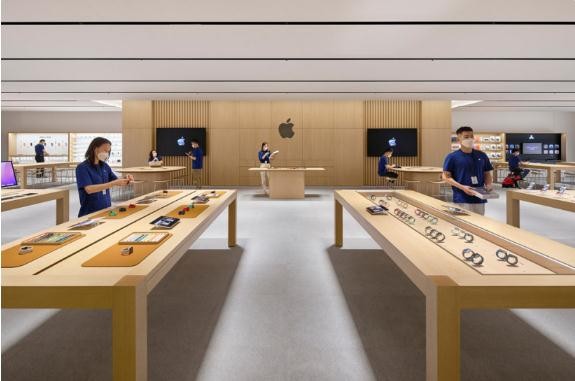 據介紹,Apple 武漢零售店采用花崗巖地面與木飾墻面,讓店內與商場(chǎng)大廳更顯明亮通透。在零售店內,顧客可以探索陳列的 Apple 產(chǎn)品與配件,并向 Specialist 專(zhuān)家尋求技術(shù)支持。Apple 武漢團隊成員將協(xié)助顧客選購商品并對設備進(jìn)行私人設置、選擇分期付款方案、使用符合條件的設備換購新機、預約在線(xiàn)支持等。