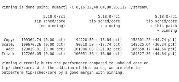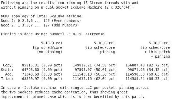 繞 NUMA 的不平衡狀態(tài),對于某些工作負載,該調度程序的調整補丁可顯著(zhù)改善基于 AMD Zen 的系統性能,甚至在 Intel Xeon 服務(wù)器上也可提供幫助。