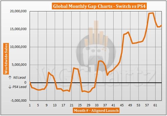 此外,過(guò)去一年中,Switch 銷(xiāo)量比 PS4 高出了 494 萬(wàn)臺,并且在 Switch 發(fā)售的第 33 個(gè)月后,索尼 PS4 單月銷(xiāo)量再也沒(méi)有超過(guò) Switch。因此,按照目前的趨勢,Switch 全球總銷(xiāo)量突破索尼 PS4 紀錄只是時(shí)間問(wèn)題,甚至有可能達到 1.55 億臺,超過(guò)索尼 PS2 創(chuàng )造的史上最高銷(xiāo)量。