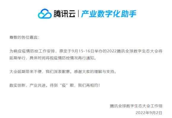 騰訊宣布,2022 騰訊全球數字生態(tài)大會(huì )(原定)于 9 月 15 日-16 日在深圳國際會(huì )展中心舉行,主題為“數實(shí)創(chuàng )新,產(chǎn)業(yè)共進(jìn)”。屆時(shí),騰訊將與生態(tài)合作伙伴、技術(shù)開(kāi)發(fā)者、政府及社會(huì )組織共話(huà)數字技術(shù)與實(shí)體產(chǎn)業(yè)的前沿趨勢,探索全真互聯(lián)時(shí)代的數實(shí)融合新機遇。