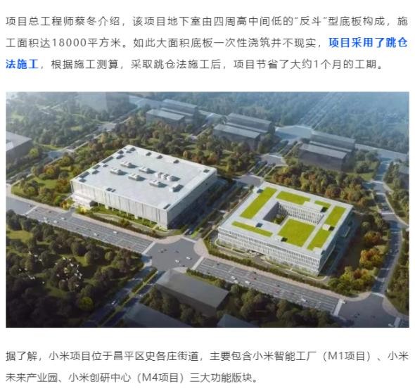 據介紹,小米項目位于昌平區史各莊街道,主要包含小米智能工廠(chǎng)(M1 項目)、小米未來(lái)產(chǎn)業(yè)園、小米創(chuàng )研中心(M4 項目)三大功能版塊。項目定位為打造集智能終端設備研發(fā)、試驗、生產(chǎn)、發(fā)布、應用、示范等全環(huán)節覆蓋及多業(yè)態(tài)融合的智能產(chǎn)業(yè)園。