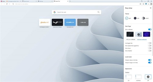 當然,你也可以從瀏覽器的設置頁(yè)面找到這些選項:opera://settings/ lucidMode