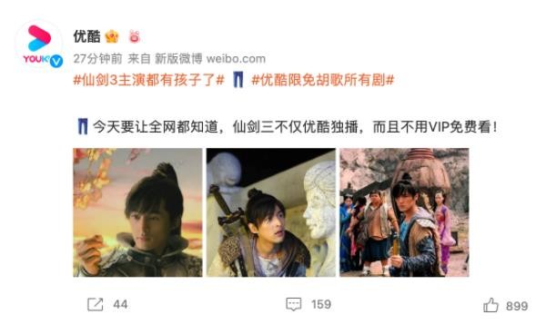 胡歌今天下午官宣生女后,該話(huà)題沖上了微博熱搜第一。優(yōu)酷官方“蹭熱度”,宣布連續三天限免胡歌所有劇。