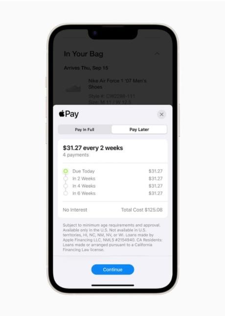 “Apple Pay Later 在設計時(shí)考慮到了用戶(hù)的財務(wù)狀況,所以它沒(méi)有費用和利息,可以在 Apple Wallet 中使用和管理,讓消費者更容易做出明智和負責任的借貸決定。”
