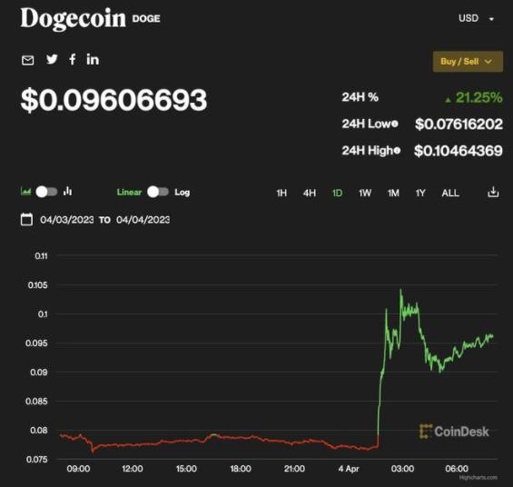 加密貨幣狗狗幣價(jià)格一度飆升超過(guò) 30%,現漲 21.25%。此前推特 CEO 埃隆·馬斯克將公司網(wǎng)站上標志性的“小藍鳥(niǎo)”換成了“柴犬”卡通形象。 ?。?a href="http://www.lsbmaoyi.com">碼上科技)