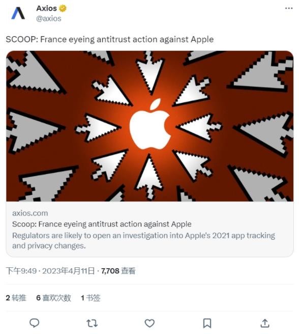據美國新聞網(wǎng)站 Axios 稱(chēng),法國競爭管理局很可能很快對蘋(píng)果公司進(jìn)行反壟斷調查,調查內容涉及此前相關(guān)團體對蘋(píng)果應用程序跟蹤政策變化的投訴。