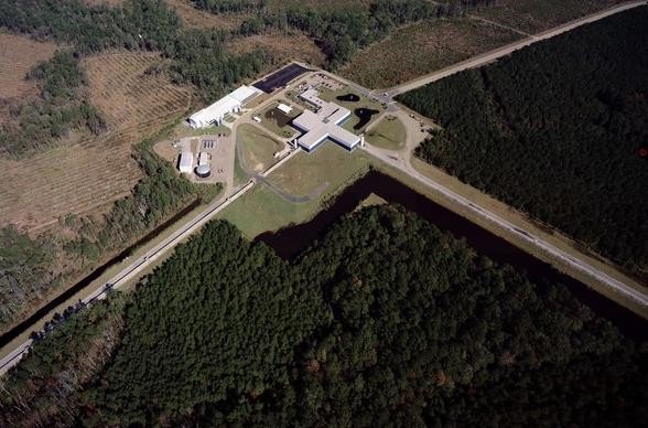 LIGO 由兩個(gè)大型探測器組成,其中一個(gè)探測器位于華盛頓州的漢福德(Hanford),而第二個(gè)位于路易斯安那州的利文斯頓(Livingston)。