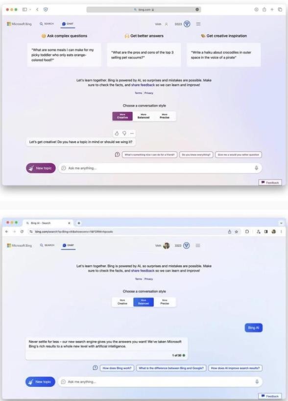 微軟可能會(huì )繼續保持使用 Chrome 和 Safari 瀏覽器訪(fǎng)問(wèn)必應聊天的用戶(hù)數量較低,以便測試它們的表現,然后再決定是否向更廣泛的用戶(hù)開(kāi)放這一功能。IT 之家還注意到,本周早些時(shí)候微軟確認將每日聊天輪數的上限從 200 提高到 300,每次會(huì )話(huà)的輪數上限從 20 提高到 30。微軟還將必應圖片創(chuàng )造器在必應聊天中的使用范圍從創(chuàng )意模式擴展到精確模式和平衡模式。除此之外,本周末,必應還慶祝了它的 14 歲生日,其于 2009 年 6 月 3 日正式上線(xiàn)。