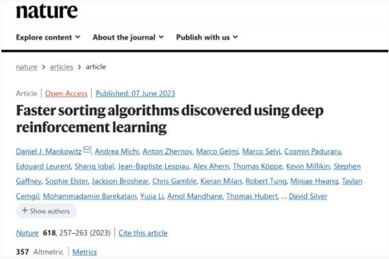 谷歌旗下 AI 實(shí)驗室 DeepMind 的工程師團隊在 Nature 官網(wǎng)發(fā)表了一篇論文,稱(chēng)使用深度強化學(xué)習發(fā)現了更快的排序算法。