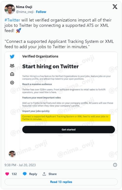 X 公司已經(jīng)邀請多家企業(yè)入駐,支持 ATS 或者 XML 格式導入招聘信息,官方表示整個(gè)過(guò)程只需要幾分鐘就能完成,聲稱(chēng)可以幫助企業(yè)擴大招聘面,吸引更多人才。